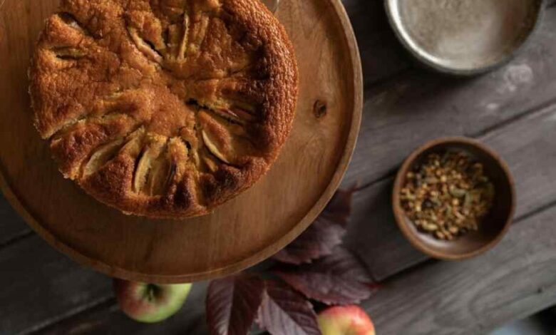 Enfournez le gâteau dans le four préchauffé à 180 °C pendant environ 35 à 40 minutes. Pour vérifier la cuisson, insérez la pointe d’un couteau au centre du gâteau : elle doit ressortir sèche. Si ce n’est pas le cas, laissez cuire encore quelques minutes. Une fois cuit, sortez-le du four et laissez-le refroidir légèrement dans le moule pendant environ 10 minutes. Démoulez ensuite délicatement en retournant le gâteau sur une assiette de service, pour que les pommes caramélisées se retrouvent sur le dessus.